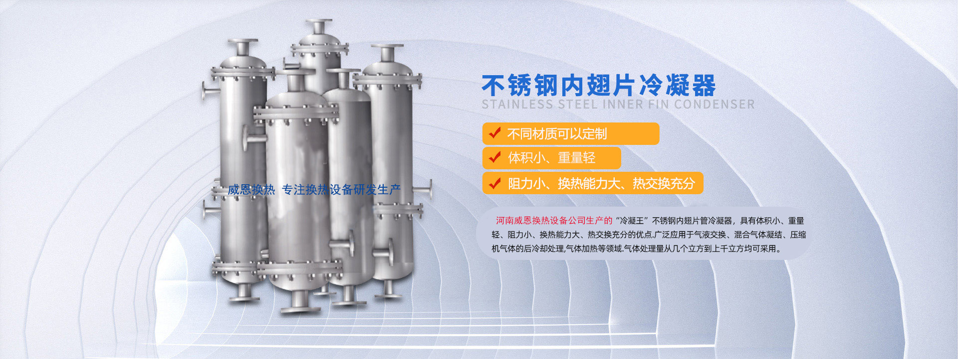 河南威恩換熱設備有限公司是一家專業生產制造螺旋板式換熱器、列管式換熱器、節能換熱設備的廠家,集科研、設計、生產、銷售、工程安裝、調試為一體的技術型企業。公司成立以來一直致力于節能環保換熱設備的研發生產,主要產品包括螺旋板換熱器、列管式換熱器、內翅片冷凝器以及鋼制儲罐、反應釜等的研發設計與銷售。公司研發生產的螺旋板式換熱器,傳熱效率高、可靠性高、阻力小、不易堵塞、可有效回收低品位熱能,已經廣泛應用到化學、石油、溶劑、醫藥、食品、輕工、紡織、冶金、軋鋼、焦化等行業,取得了良好的效果,得到顧客的廣泛認可和一致好評。針對制藥行業,本公司生產的新型不銹鋼內翅片換熱... 【了解更多】